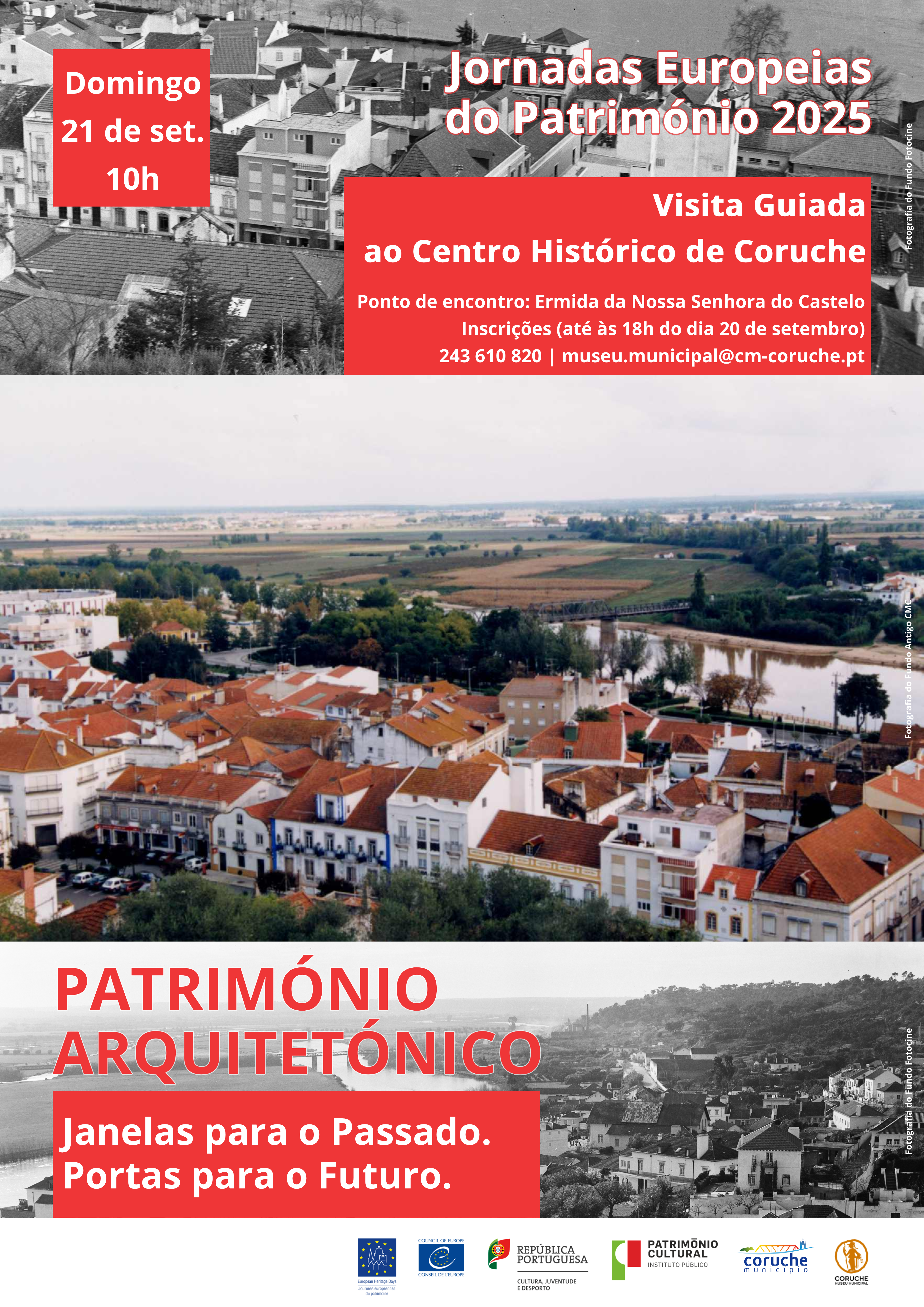 A Câmara e o Museu Municipal de Coruche assinalam a Jornadas Europeias do Património 2025 com uma visita guiada ao centro histórico de Coruche.
